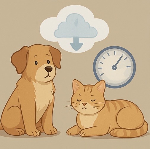 特に、関節炎を持つ犬では気圧が下がると痛みが悪化しやすいという研究報告があります。猫では気圧低下の日に活動量が10〜20%減ることも確認されています。